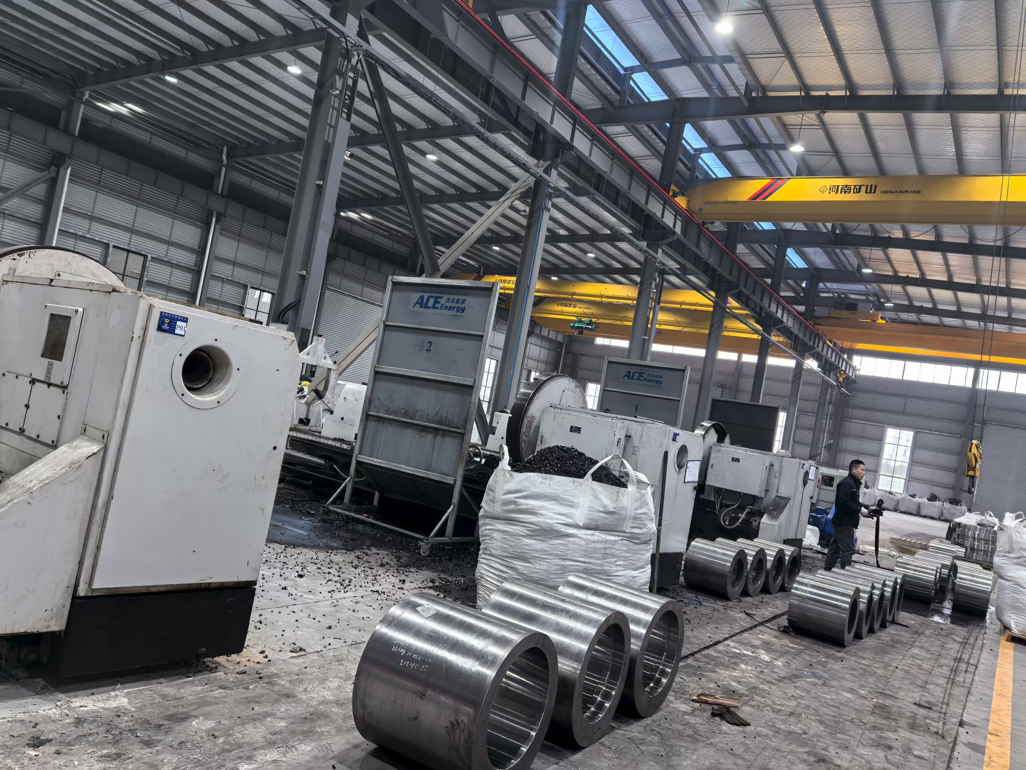Grupa ACE je sveobuhvatna grupa poduzeća za proizvodnju teške industrije čije vertikalno integrirano poslovanje obuhvaća kovanje, toplinsku obradu, preciznu strojnu obradu, zavarene konstrukcije i površinsku obradu velikih razmjera. Posluje putem triju specijaliziranih podružnica u objektima ukupne vrijednosti preko 68.351 četvornih metara , grupa isporučuje end-to-end proizvodna rješenja za klijente industrijskih strojeva širom svijeta — kombinirajući certificirano upravljanje kvalitetom, naprednu proizvodnu opremu i usluge proizvoda u cijelom životnom ciklusu unutar jedne organizacijske strukture. Proizvodni pogoni grupe, vidljivi na slikama pogona, pokazuju i opseg njezinih operacija i proizvodnju preciznih komponenti velike količine koju je sposobna održati.
